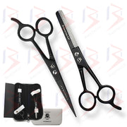 BeautyTrack Barber Scissors Set Basic Hair Cutting Shears 6.5 Inch Black