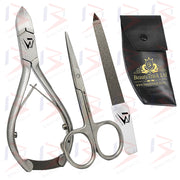 Nail clipper set from BeautyTrack contains thick toe nail cutter, nail scissors, diamond deb nail file.