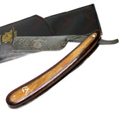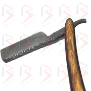 BeautyTrack Rasoir droit en acier de Damas fait à la main avec manche en bois élégant